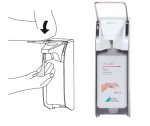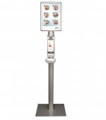 180 cm vysoký bezdotykový dávkovač so stabilnou základňou a informačným letákom, s uzamykateľným krytom a odkvapkávačom s odnímateľnou miskou.